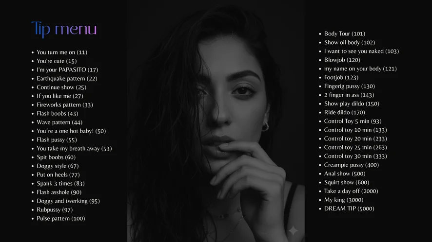 スパンキング, アヘ顔, 割れ目, 手マン, マッサージ, 手コキ, ヒール, トップレス, バックスタイル, 中出し, ストリップ, 顔射, 足フェチ, 大人のおもちゃ, オナニー, オーガズム, トゥワーク, ナイロン, 足コキ, control, ダブル挿入, 喫煙, アナル用おもちゃ, ハードコア, 潮吹き, アナル, ディルドまたはバイブ, オイルショー, 騎乗位, ディープスロート, フェラ, ブッカケ, パイズリ, 猿ぐつわ